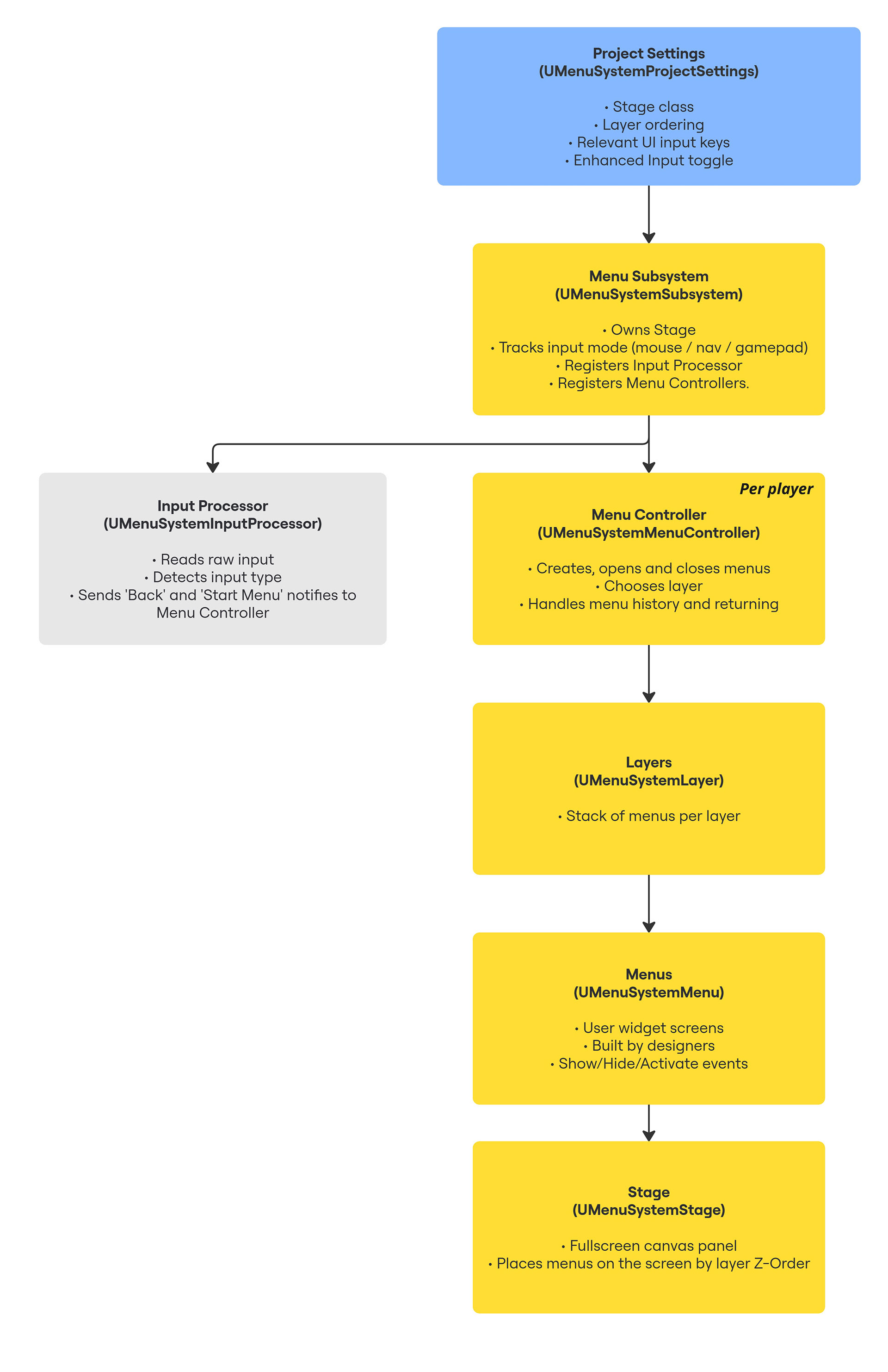 The Menu System Plugin is a scalable, C++ driven UI framework I designed to streamline menu development across multiple projects. Built with a focus on predictable behaviour, designer-safe workflows, and clean architectural separation, it enables teams to create full menu flows without specialised UI knowledge. The system is already being used successfully in an unannounced game, where designers onboarded quickly and were able to build screens independently using the accompanying dual-audience documentation.