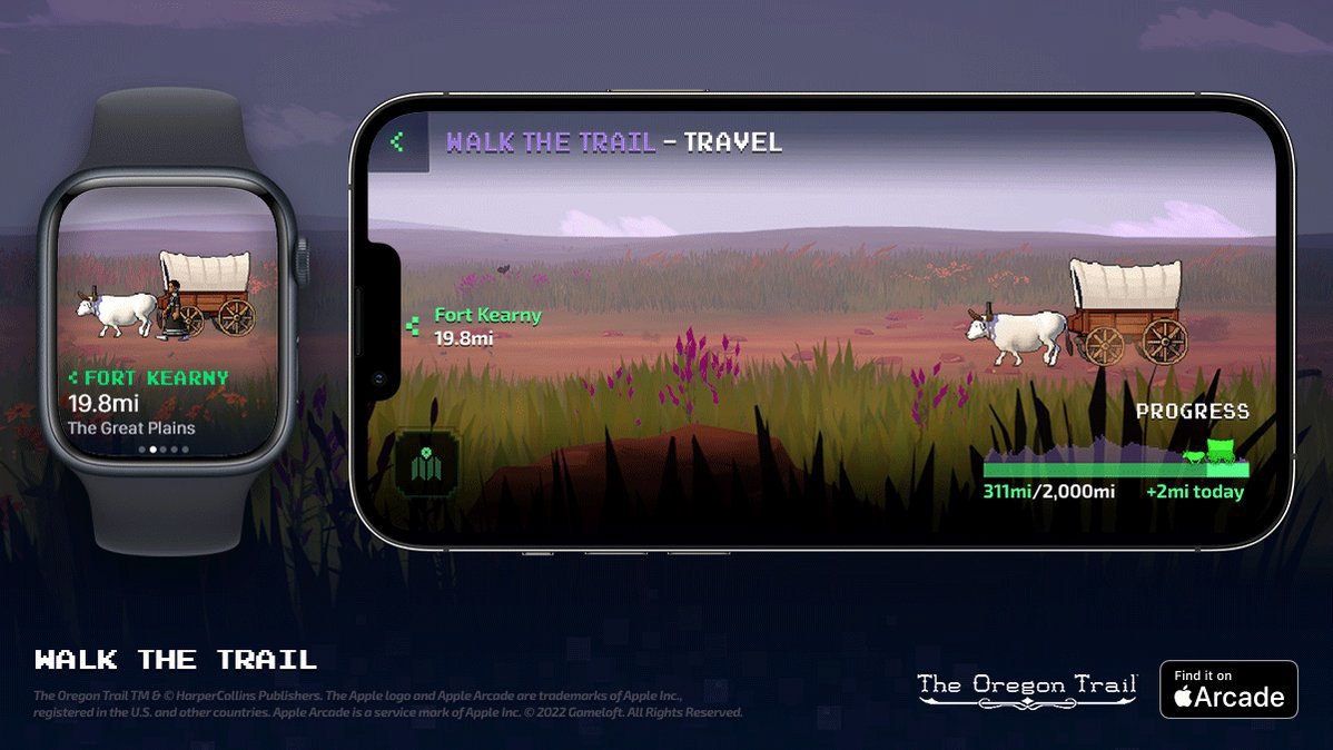 I worked on The Oregon Trail: StepTracker, a companion app for Apple Watch that tracked daily steps and synced player activity into the Apple Arcade version of The Oregon Trail. My responsibilities spanned both SwiftUI development on the watch app and Blueprint/UI integration inside the main game.